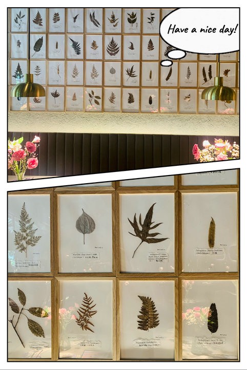 墙上有一些标本相框组成的图案,格调感强