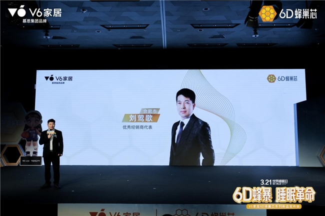 经销商代表刘莺歌现场分享了样板城市实践结果,6D蜂巢芯上新以来火爆终端销售,首先得益于6D蜂巢芯是寝具竞争壁垒的“核心引擎”,其次是结合本地消费习惯、城市文化和店铺运营特点创造的5个制胜动作-专业培训、销售演练、奖励兑现、经验分享、落地活动。未来,将把V6产品做成现象,实现品牌声量与终端销售齐升的标杆。